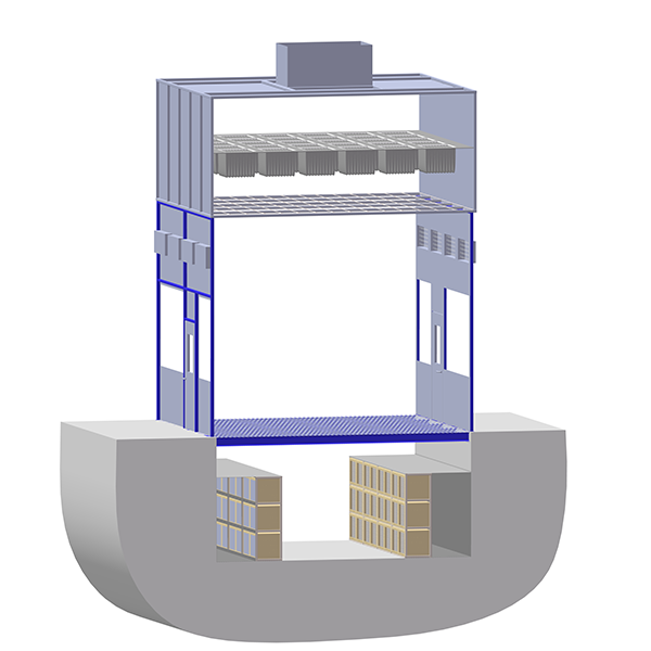 格柵板平臺位于0m平臺,漆霧捕集室位于地平面以下,適用于噴涂重型工件的噴漆室。